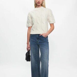 ANINE BING Brittany Cable Stitch Sweater Ivory, M
