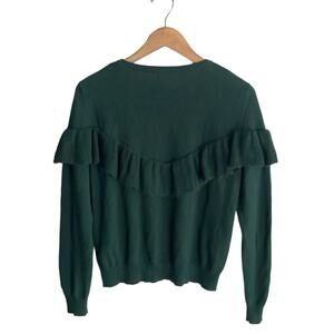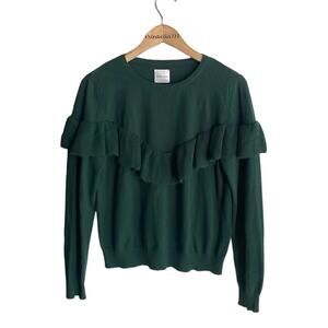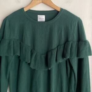ANINE BING Cashmere Ruffle Knit Sweater Emerald Green