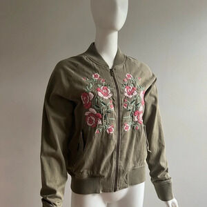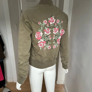 ANINE BING EMBROIDERED COTTON BOMBER Green Khaki Coat JACKET SMALL