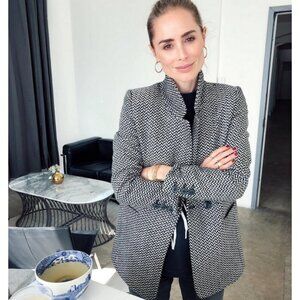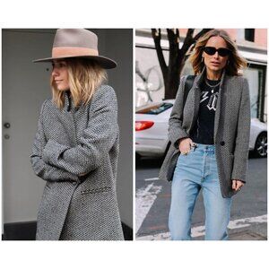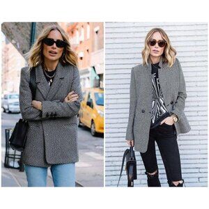 💕ANINE BING💕 Fishbone Blazer ~ Wool Blend Black & Off-White Print XS