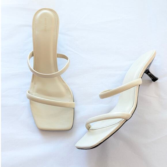 - Ivory, double wrap bracelet, square open toe, glass heel