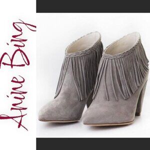 ANINE BING Irmelin Gray Suede Fringe Ankle Bootie, Size 37