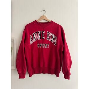 ANINE BING Jaci Red Organic Cotton Crewneck Sweatshirt Size Medium
