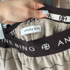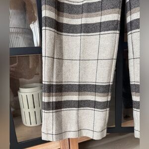 ANINE BING Karina Checked Wool Straight wide leg Pants khaki plaid trousers