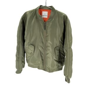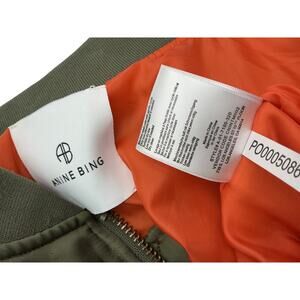 The ANINE BING 'Leon' Green polyester Bomber Jacket is a modern take on a classic silhouette. Designed in an army-green hue, this lightweight bomber features ribbed trim, zip front closure, and functional side pockets. Condition: Pilling or Fabric Pulls