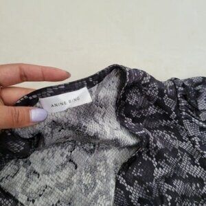 ANINE BING Penelope Long-Sleeve Silk Grey Python Print Mini Wrap Dress Size Small.