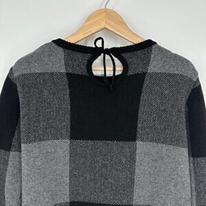 ANINE BING Buffalo Gingham Plaid Sweater Wool Blend Crew Neck Knit Tie Back Check Boxy