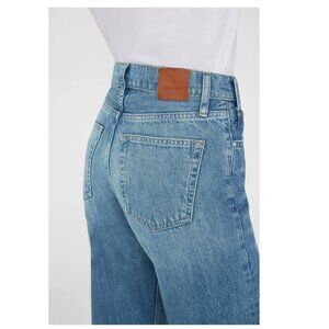 Organic cotton denim high rise straight fit, Button-fly closure, Long inseam. Nordic blue
