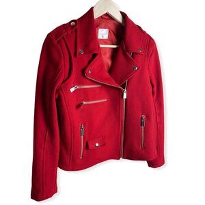 ANINE BING Red Moto Jacket Women's Size M Zip Front Biker Coat