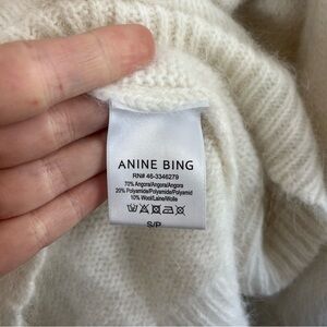 ANINE BING Rosalind Angora Sweater. Off white and INCREDIBLY soft. Crew neck. Ribbed cuffs, neck, and hem. Full long sleeves and a roomy fit in the softest material. Slightly oversized.