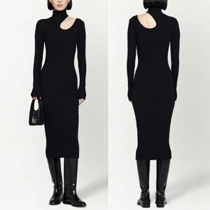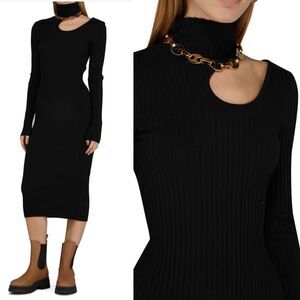ANINE BING Size XS NWT Victoria Black Ribbed Midi Cutout Sweater Dress Cut Out