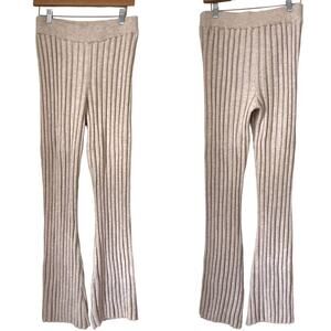 ANINE BING Val Wool Ribbed Knit Flared Pull On Pant in Cream Size M