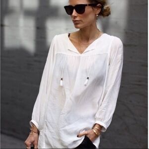 ANINE BING White boho sheer Flowy Tassel Blouse NWT