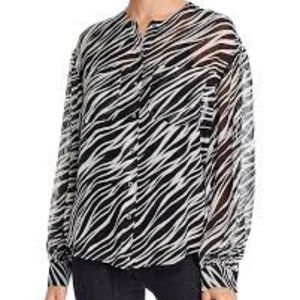 This blouse features a classic button-up style and long sleeves, making it versatile for any occasion. The silky smooth fabric is not only comfortable to wear, but also adds a touch of luxury to your look. Available in size medium, this blouse is perfect for any woman who wants to make a statement with her fashion choices. Pit to pit 26”