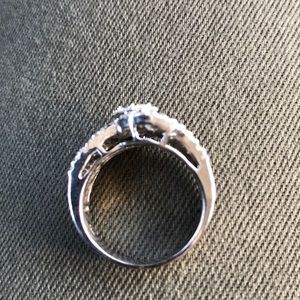 14K WHITE GOLD AND DIAMONDS RING. ITS VERY SOLID ON GOLD AND HEAVY RING WITH CENTER DIAMOND FLOWER PETALS, DIAMOND BAGUETTTES ON SIDES AND SMALL ROUND DIAMONDS. THIS IS THE PERFECT ENGAGEMENT RING, ANIVERSARY RING OR JUST THE PERFECT FASHION RIGHT HAND RING💏💏💏💏