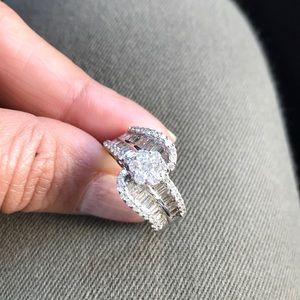 @showdog hello dear ,, center diamonds are flower petals 6 rondd and ctr one ttl seven diamonds, it has baguettes on the outside as well and round ones on edges. Its beautiful!!
