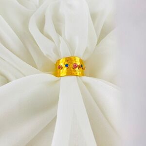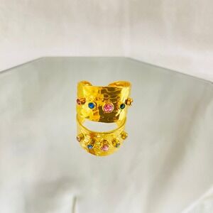 ANIYAH Neutral Irregular Color Rhinestone Band Gold Plated Open Ring
