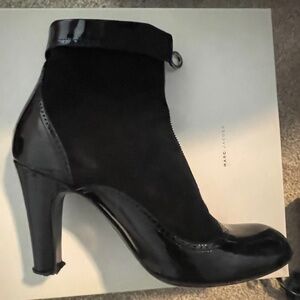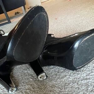 PATENT LEATHER AND SUEDE. NEEDS TOP PIECE FOR HEELS. 3 inch heels. 8 inches from top to bottom.