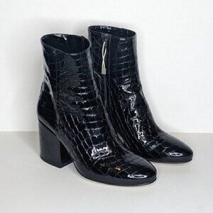 CARACTERE ANKLE BOOTS SZ 8 (EU 38) BLACK PATENT LEATHER CROC EMBOSSED HEELED