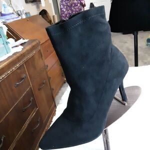 ANKLE BOOTS Black Suede Top Stitching 4" Spike Heel sz 7