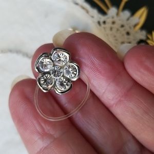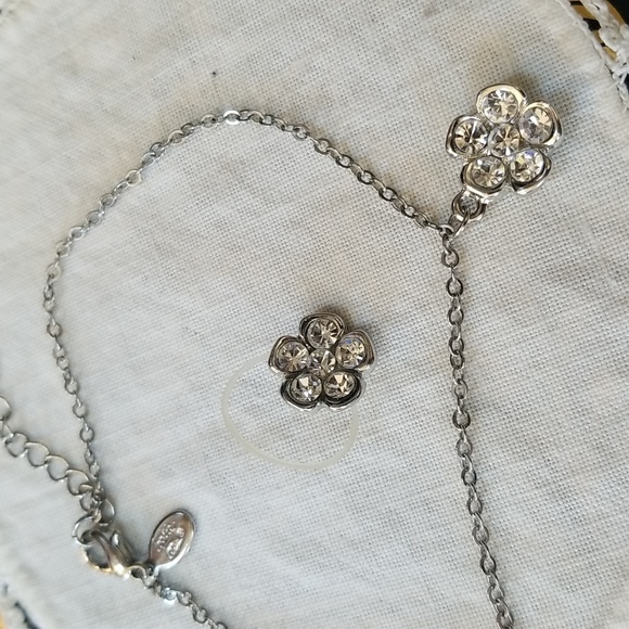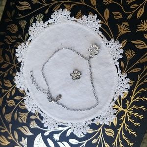 Flower design rhinestones and silver chain.