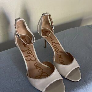 Indulge in the luxury of the Sandal heel, featuring a delicate stiletto heel, sexy ankle strap closure, and a subtle peep toe, this heel is perfect for your next date night.