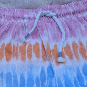 Brighten up your wardrobe with these vibrant tie-dye elastic waist shorts with drawstring closure, perfect for everyday wear or fun outings! Featuring bold, colorful stripes of pink, orange, and blue, these shorts bring a playful and trendy vibe to any outfit. Crafted from soft, high-quality fabric, they ensure all-day comfort and durability, making them a great choice for kids and adults alike.