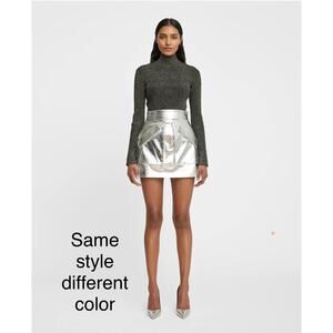 The Cherry skirt from Aknvas is a statement piece with its faux leather construction, ultra-high waist, and large cargo-inspired pockets. The crackled metallic leather adds a unique texture and shine, while the slanted flap pockets give it a modern twist. The center back zipper closure ensures a sleek and secure fit.