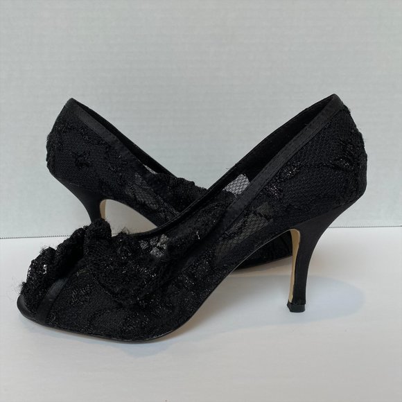 ANN MARINO BLACK HOLLYWOOD LACE HEELS IN SIZE 9 LIKE NEW