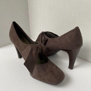 ANN MARINO BROWN SUEDE BOW HEELS IN SIZE 9