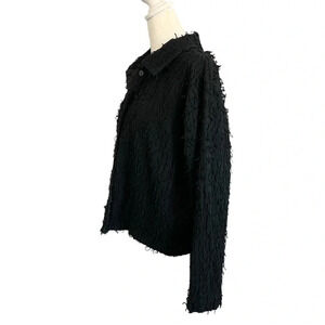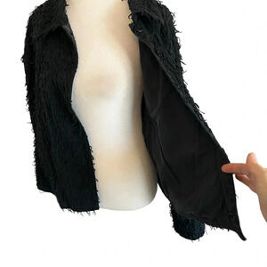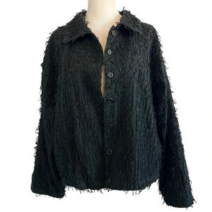 ANN MAURICE Vintage Black Fringe Button Up Cotton Jacket Made in India Size XL