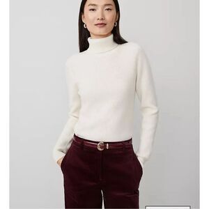 ANN TAYLOR $179 Cashmere Ribbed Turtleneck Sweater cream XSP NEW