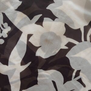 Beautiful brown and cream floral skirt. 100% silk with a satiny lining. Zips on the side. Small pull in front that isn't noticable when worn - see last picture. Approx. 14" waist, 25" length. (F1)