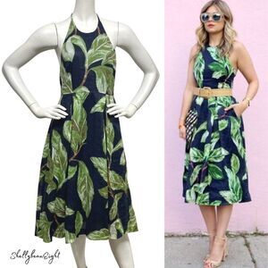 ANN TAYLOR AMALFI Palm Tropical Halter Dress 2 P 4