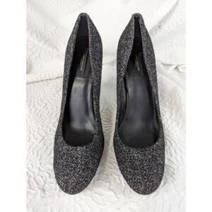 Wowwww! Delicious style from Ann Taylor! In a textured black & white marled fabric- similar to flannel- with black patent leather stiletto heel & platform, these heels, pumps, are stunning! Leather sole, (Condition Note: writing on soles), approx 4.5" heels on a .5" platform, Size 9.5M, Excellent EUC Condition! ***ALWAYS ABSOLUTELY GUARANTEED CONDITION OF EUC MINTY-EXCELLENT TO LIKE-NEW, by @nocd!***