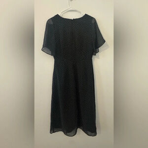 ANN TAYLOR BLACK & WHITE POLKA DOT MIDI DRESS V NECK WITH BUTTONS NWT SIZE 2
