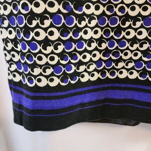 NAME: ANN TAYLOR BLUE/BLACK/WHITE SKIRT, BLACK LINING THROUGHOUT, SIZE 18, DOT/CIRCLE DESIGN, HEMLINE HAS A BLACK/BLUE BAND DESIGN