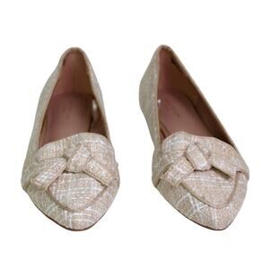 ANN TAYLOR BOW CREAM BEIGE TWEED TEXTILE POINTED TOE FLAT BALLET SHOES Sz 7.5