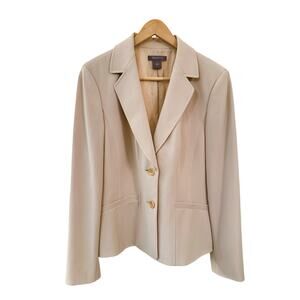 ANN TAYLOR Beige Button Front Career Blazer Jacket Size 8Professional Business Pockets Lined Double Button