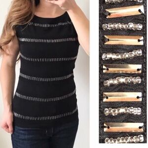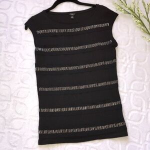 ANN TAYLOR Black Beaded Cap Sleeve Top Size SmallP