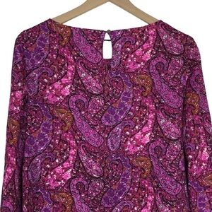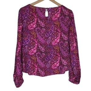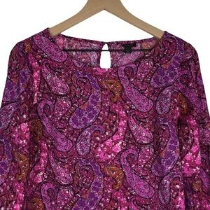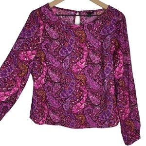 ANN TAYLOR Blouse Top Floral Paisley Long Sleeve Keyhole Draped Sleeve Size 8