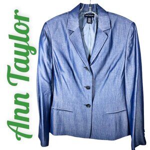 ANN TAYLOR Blue Sateen Wool 3-Button Blazer, Size 8