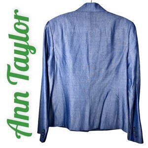 ANN TAYLOR Blue Sateen Wool 3-button Blazer, Size 8