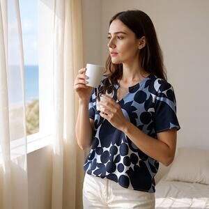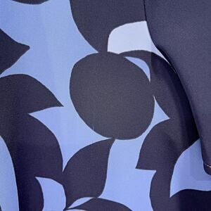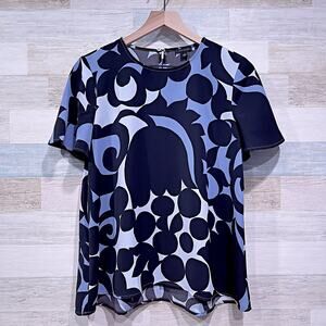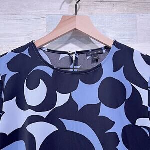 ANN TAYLOR Bold Floral Print Blouse Blue Black Short Sleeve Woven Womens Small