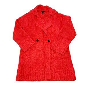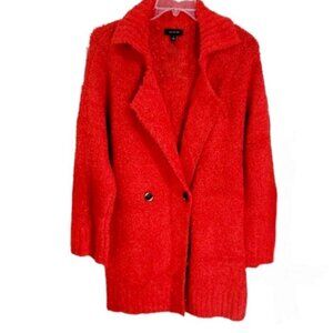 ANN TAYLOR Boucle Double Breasted Coatigan XS Sweater Coat Solid Red Preppy Bold