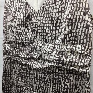 ANN TAYLOR Brown White Silk Abstract Geometric V-Neck Sleeveless Sheath Dress 4