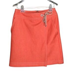 ANN TAYLOR CHAMBRAY FAUX WRAP COTTON BLEND SKIRT 4