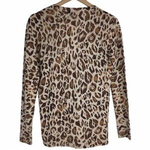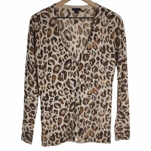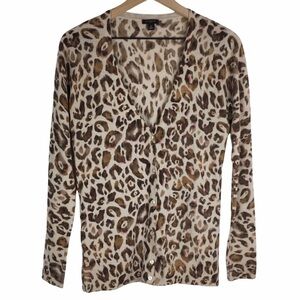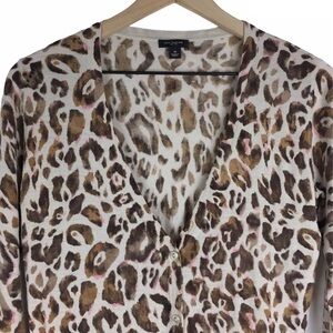 ANN TAYLOR Cardigan 100% Merino Wool Sweater Leopard Animal Print Size Medium