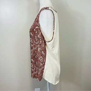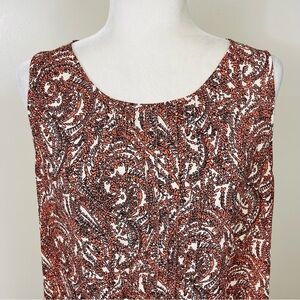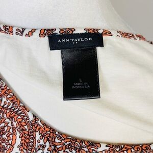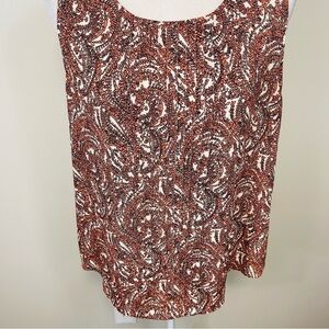 ANN TAYLOR Cream & Orange Pleated Sleeveless Career Blouse - LARGE