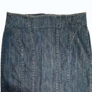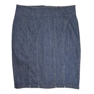 ANN TAYLOR DENIM Tailored Straight Pencil Skirt Women Sz 8 Blue Stretch Casual